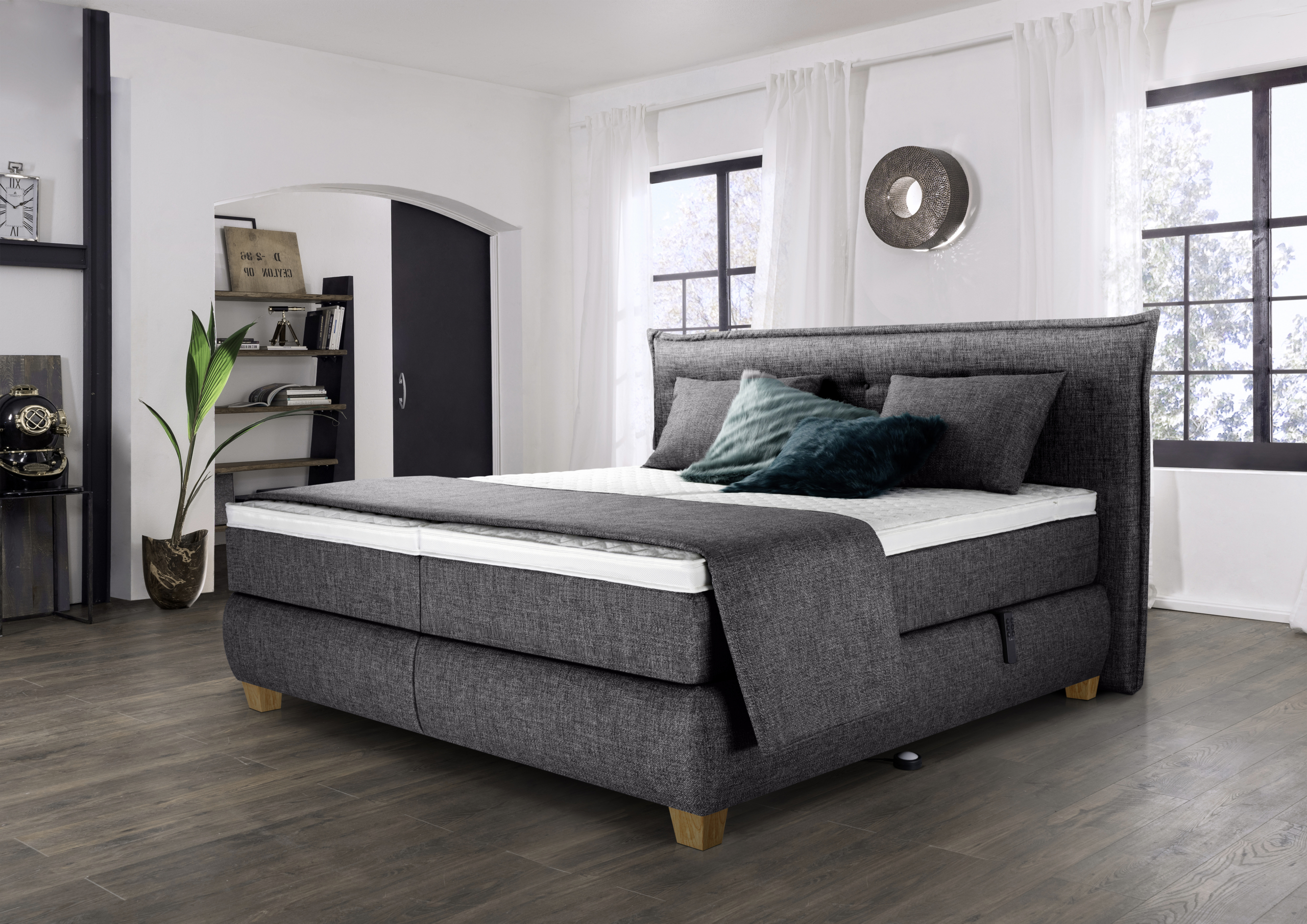 - 3 Boxspring-Varianten, Matratzen wahlweise mit Stoff- oder Drellbezug
